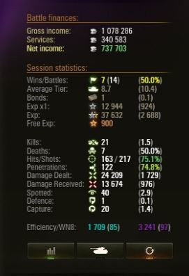 )Ma a WR tekintve ugyan nem volt fényes napom - első 3 csata győzelem, utána zsinórban kb 4 vereség ---> szervert vált és utána sem volt sokkal másabb a szitu sajnos.
