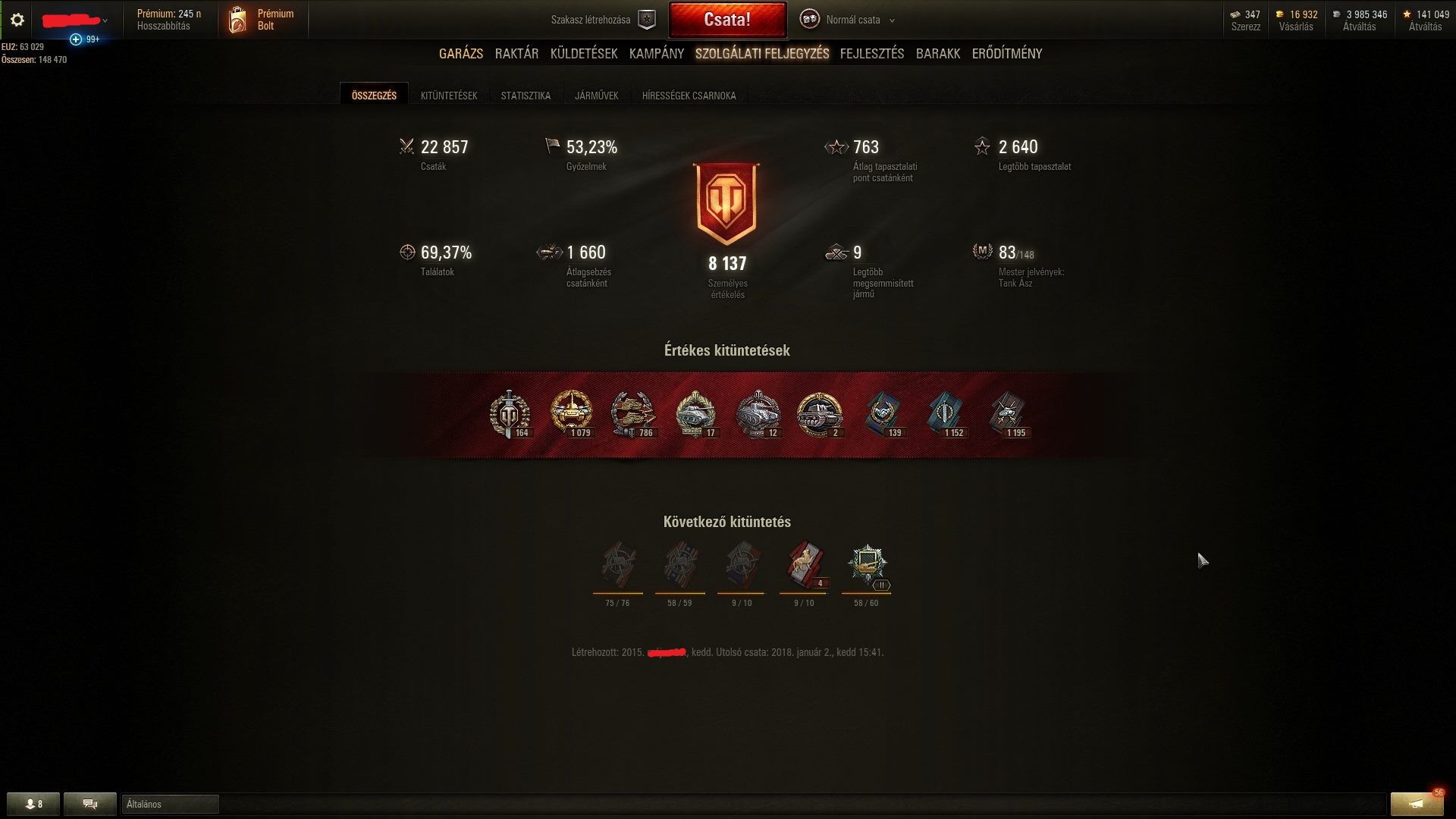 Plata: wot-ban nem sokat, idén szerintem be se nagyon léptem, teljesen ráfüggtem a hajósra. wot-ban utoljára karácsonyi ládákat, kellett az összes tank, szal elég sokat.