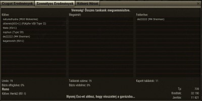 Megjavult az ágyúm. Azért KV-3-ra, M6-ra és az arty-ra is sikerült 0dmg-s kritikust lőnöm. -