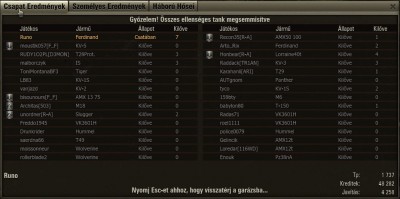 Még egy kicsit visszakanyarodva az ominózus témához. Én beismerem hogy ott, abban a csatában ha másfelé megyek, talán nyerünk. Hiszen volt még a csapatban 14 tank rajtam kívül, talán rajtuk is múlhatott a dolog. Ami nekem érdekes volt, az az alpári szitokáradat ami rám zúdult miután a pro játékosokat (pro= 10-es tank a garázsban) kilőtték.