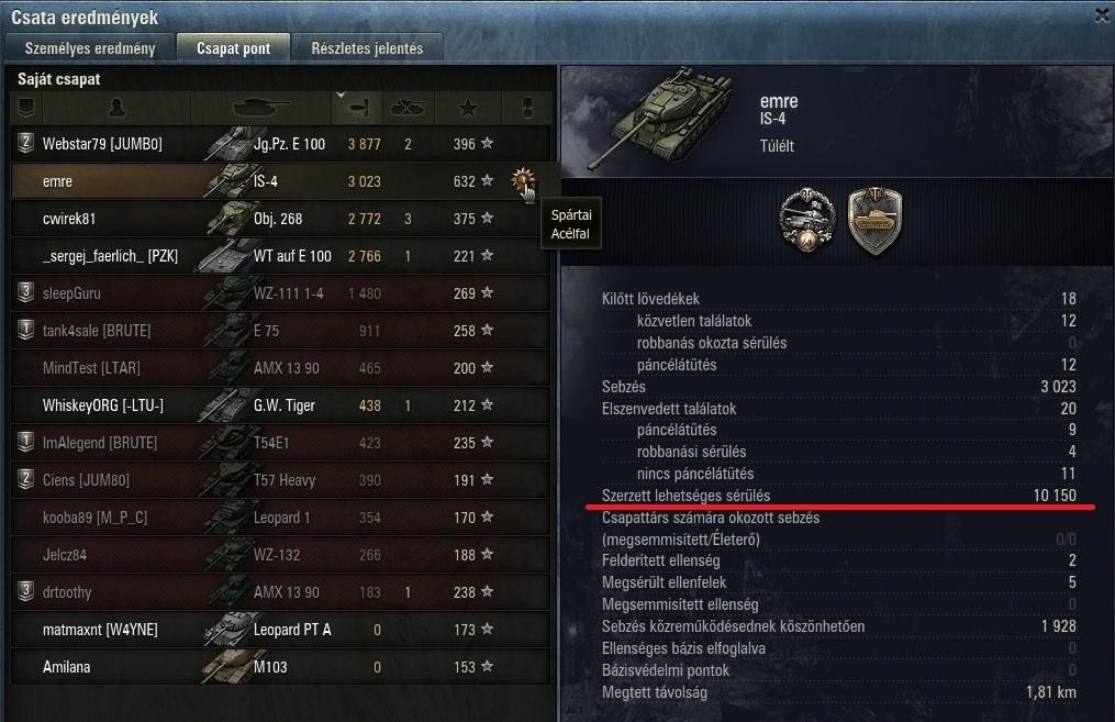 - Nem szoktam idegenek köreit megosztogatni, de ez a csapattárs szerintem megérdemli, hogy kirakjam ezt a képet ide. T110E3-mal 10k-t sebzett és 12k potenciális sebzést kapott be.