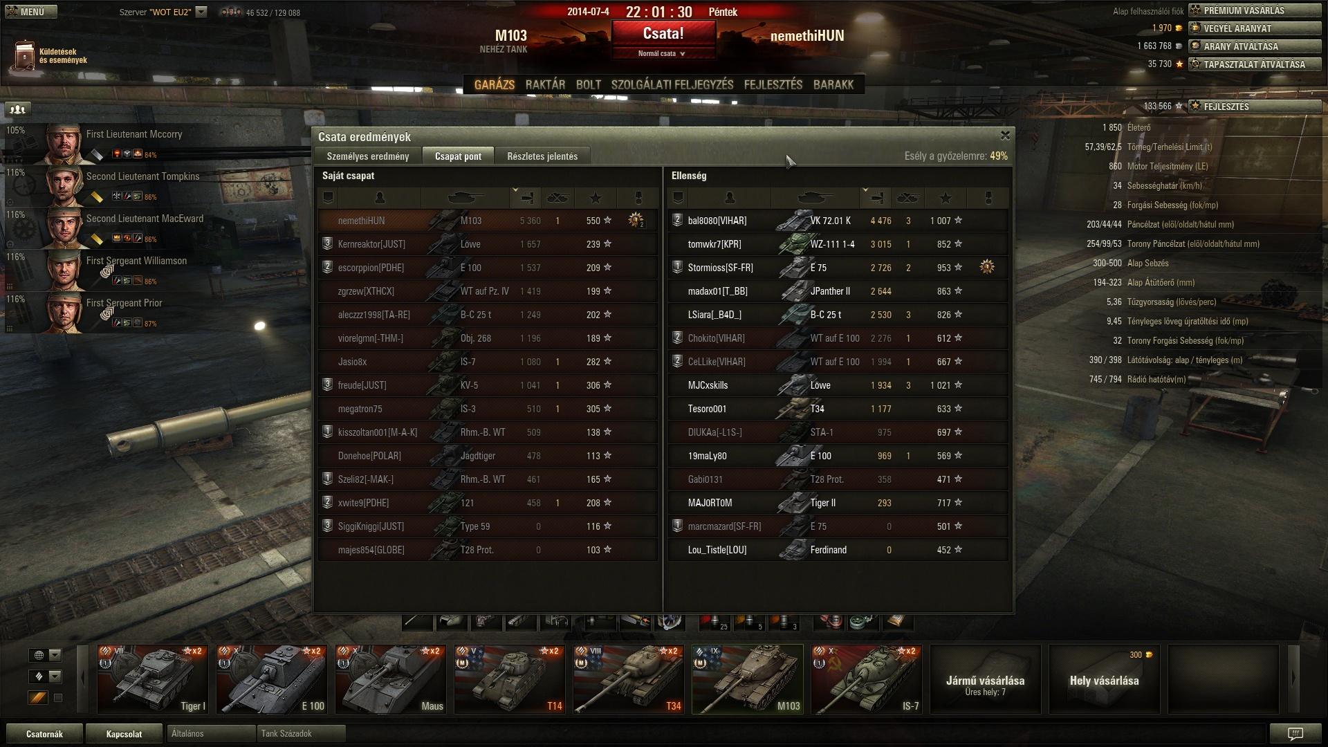 Jaaaajjjj, jó is volt, a végére már 'megbabonáztam' az E75-öt. De fúúúúj a stock T54.