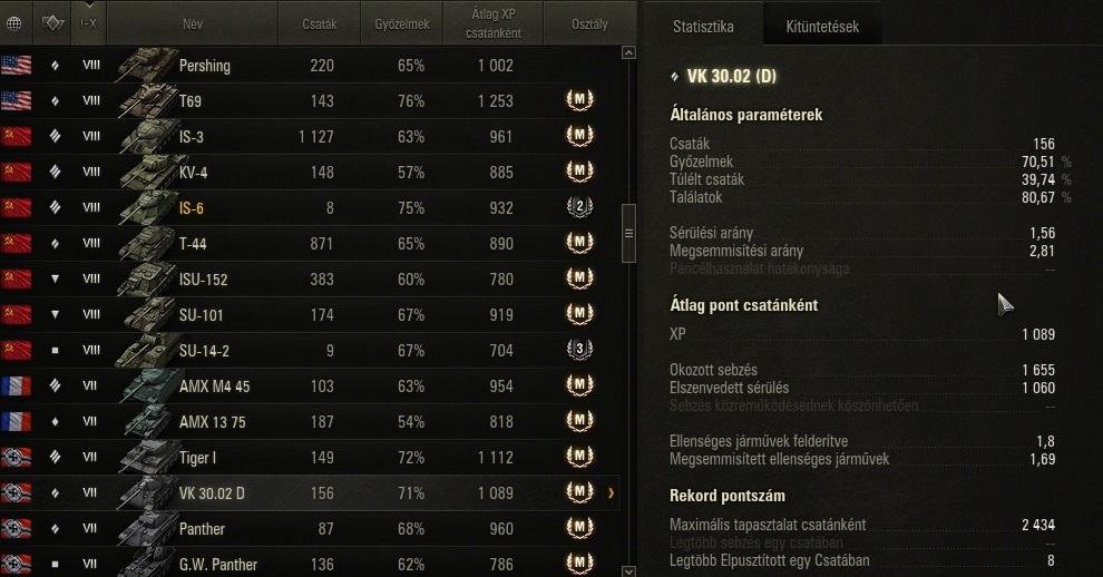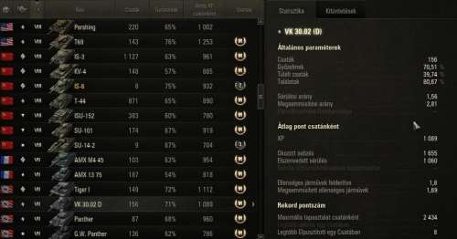 pl mehet a piros játékos acc-jával a lila szintű tesója, hogy segítsen neki kihúzni egy tankotami gyakoribb, hogy valaki gyengén kezdi a játékot, és fokozatosan javul a statja. Pl az én elmúlt 1000 csatára vonatkozó WN8 már simán 1000+, az utolsó 7 nap 1200+, az utolsó időszak 1400+ - de összességében még mindig csak gyenge sárga vagyok (730), vagyis aki csak az alapján ítél meg, az téved. Vagy mégse, mert van olyan tank, amivel elveszett bárány vagyok és a 730-at se bírom hozni.