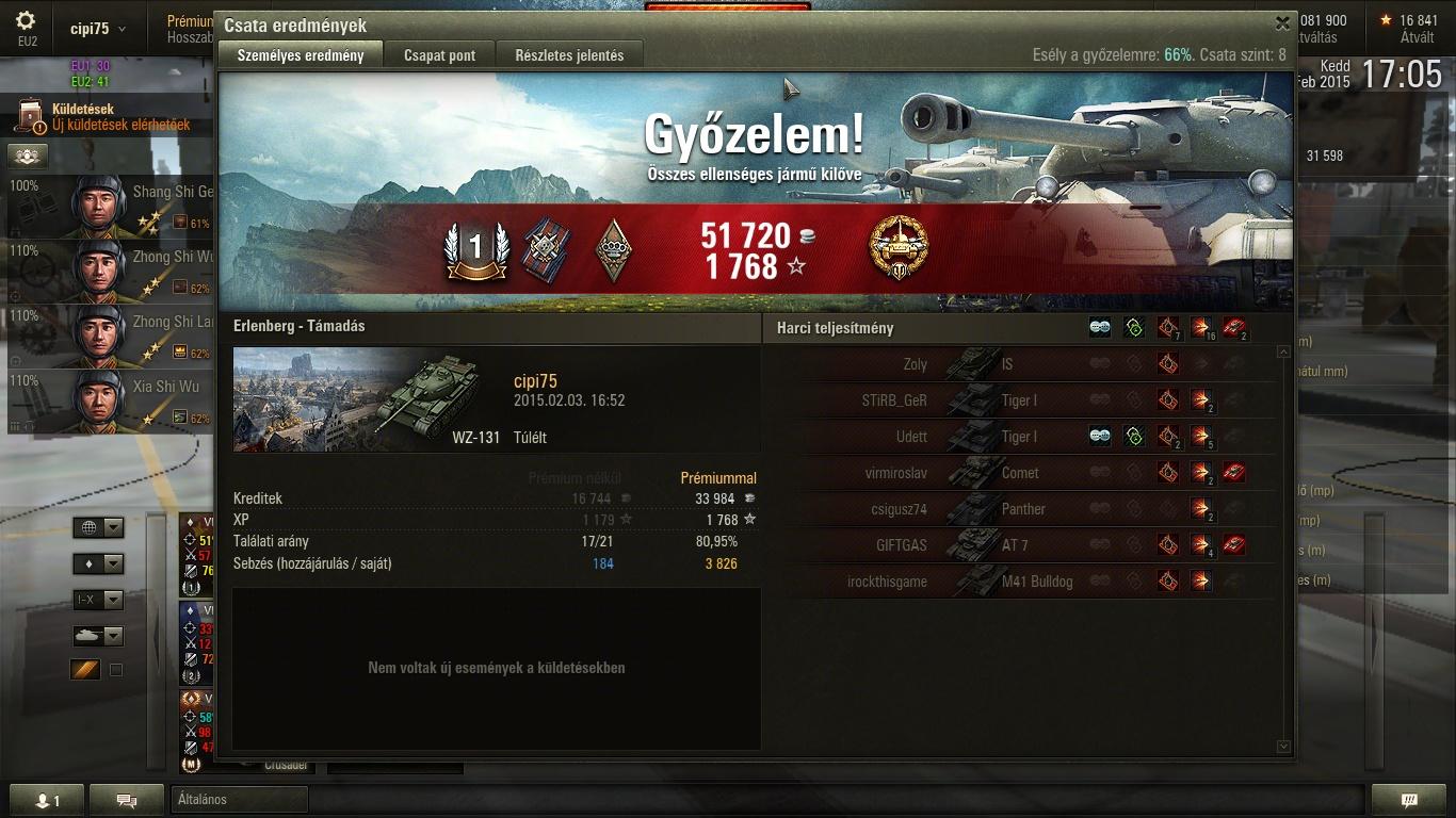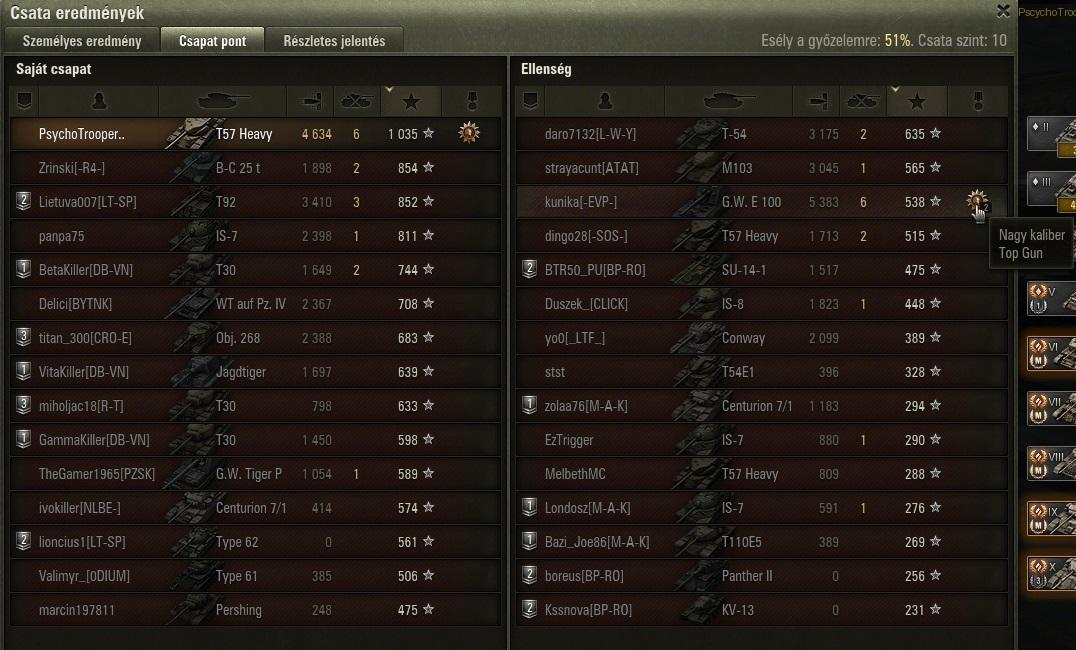 Nekem erre lett meg a top3 xp, nem túl magas sebzés mellett. A replay-t csak a screen miatt töltöttem fel, nem kell keresni, mert már töröltem, a feladat teljesítésétől eltekintve elhanyagolható csata volt.