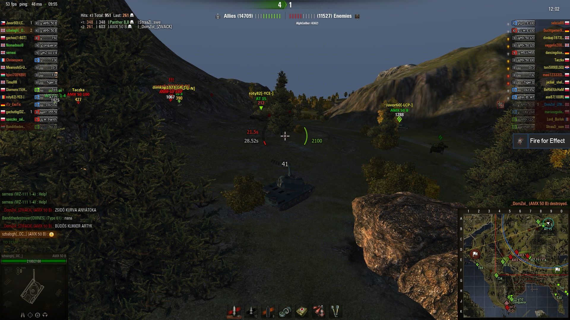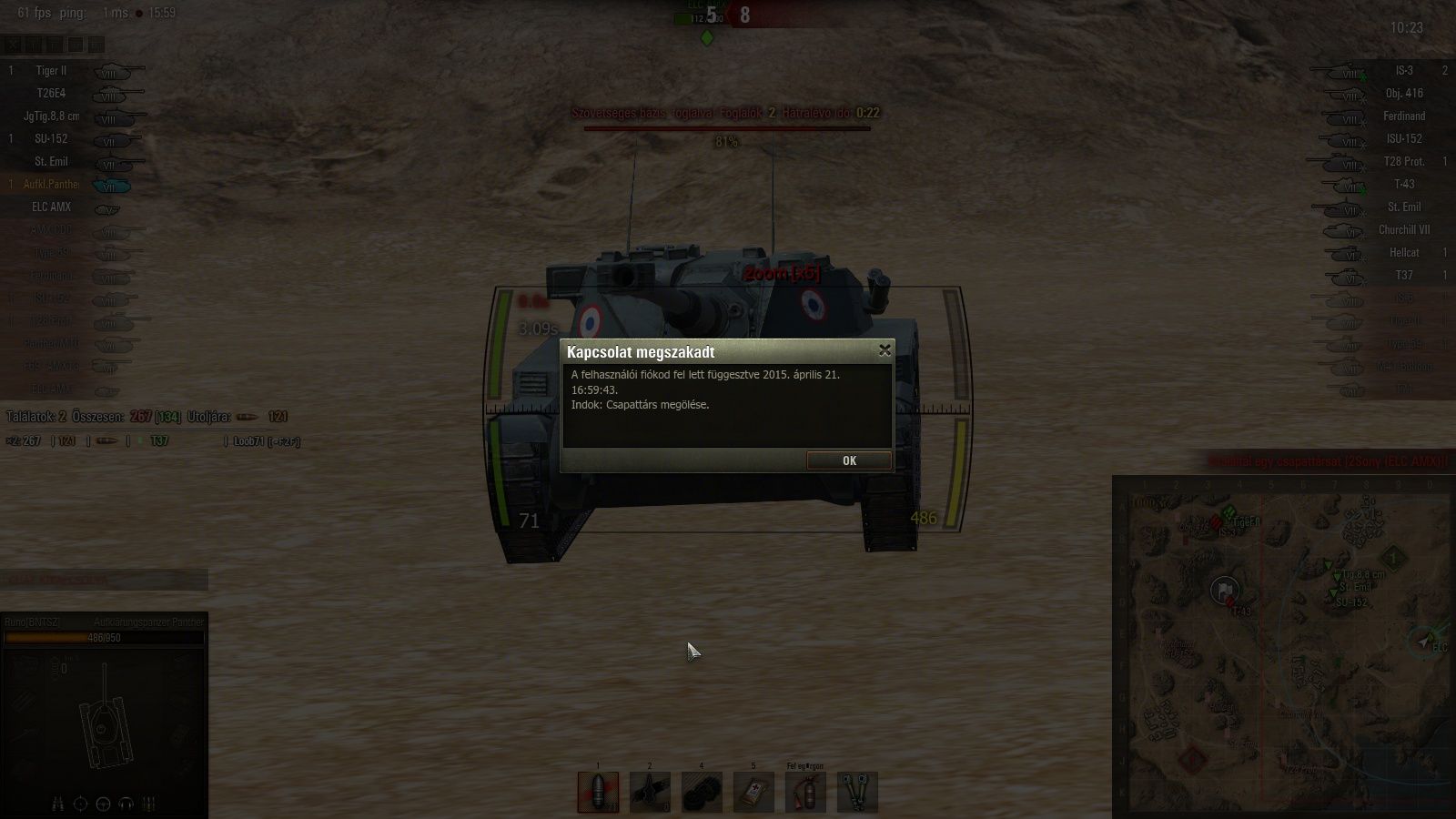3. csata enemy arty 1 hit-el, szegény IndiPz-ben, -1300 HP.