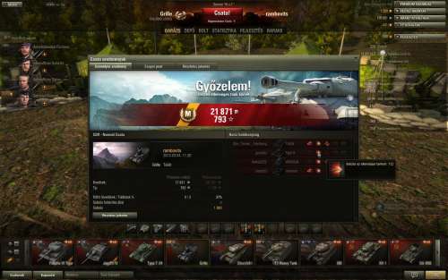 és megnyertük éljen a duplázás.T71-et megvettem, egész frankó kis gép. Malinovkán mentem egy kört vele most reggel. Egyedül voltam scout ezért bemanővereztem középre a bokrokhoz a kis szakadéknál. Nyugodtan elfogyasztottam közben a reggelit és addig a többiek szétkapták az E100, lorien, 50B, VK4502A négyest miközben kaptattak fel a hegyen.