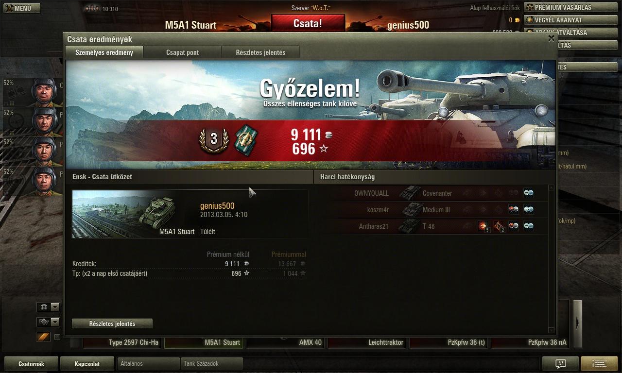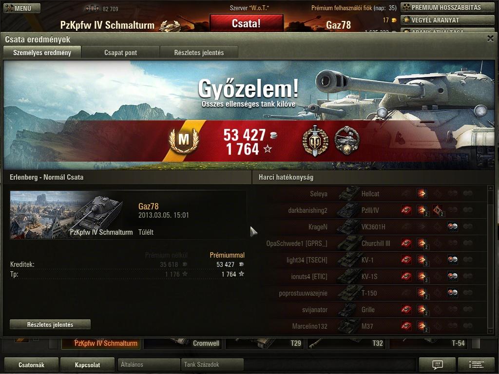Így viszont jó lesz ha összekapom a gatyámat... Minimum a jó játékosok szintjét szeretném elérni, bár egyelőre sok még az olyan tank amiket fel kell fejlesztenem (pl. M4-et is most vettem csak meg). Szerintem kell egy 3-4k csata, amire kialakul az a pár tank minden tierben, amivel szivesen játszom, és jól is megy majd vele.