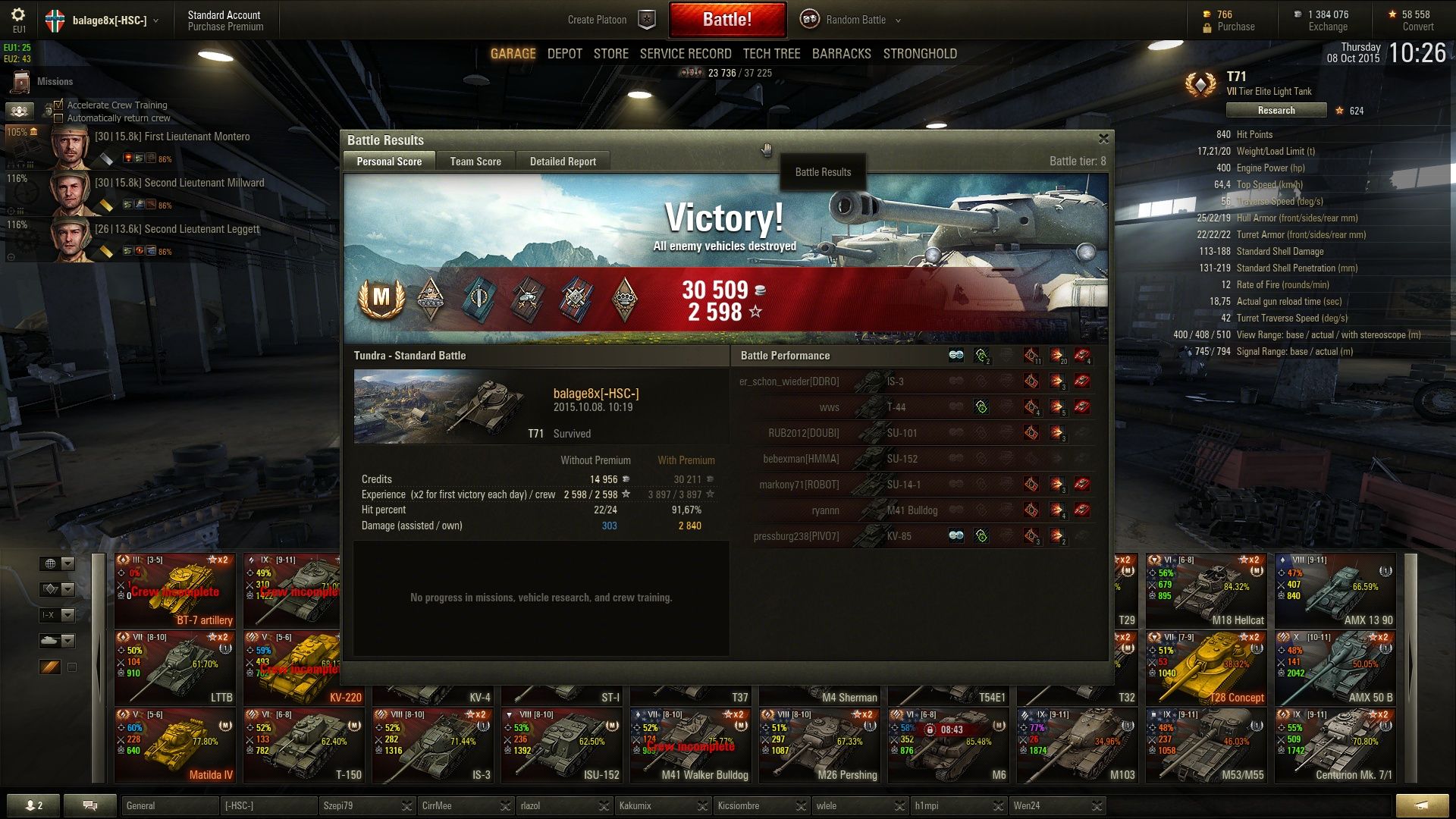 Utolsó csatában meg a győzelem előtt 5 mp-el szedett ki egy lövéssel (640 Hp) az O-I.