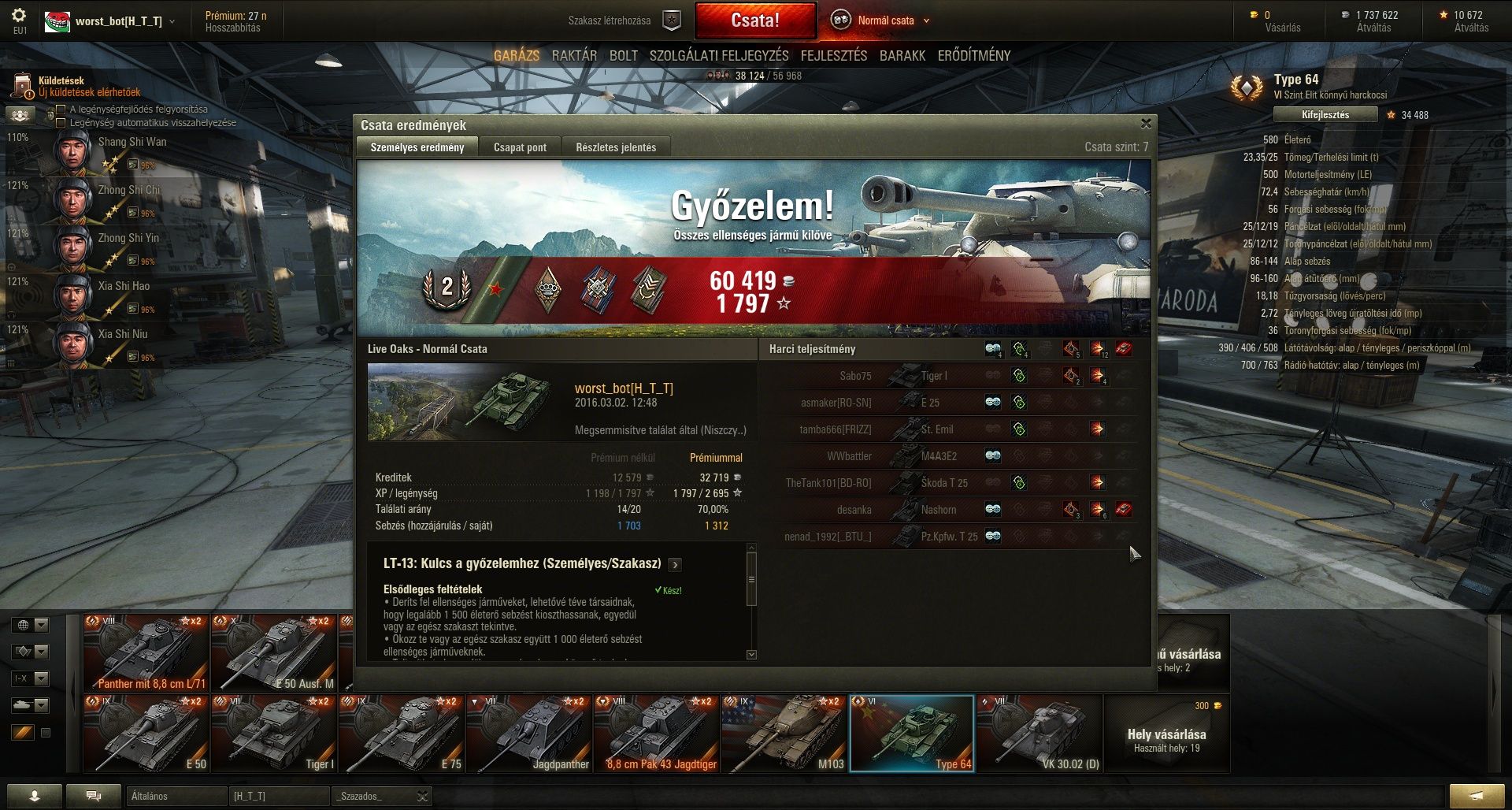 Szombat reggel óta 96 csatát játszottam, 62% WR-rel és (eddigi pályafutásom legjobb átlagát hozva) 2000+ WN8-cal.
