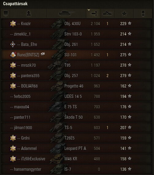 azért ha kell össze is tudják szedni magukat egy-egy strong/cw-re. A lényeg az, hogy ne gumicsizmás statpadder ovisok legyenek benne, akiknek elképzelésük sincs róla hogy tud a wot csapatjáték lenni, jó felmenni a ts-re, mert jó a hangulat, és nem csak a csíterflémelés megy vagy a hencegés. Cserébe ezt tudom ajánlani: 28x/1300/52%. Ja, és ha időnként összejárnak sörözni, haverkodni az nem hátrány.
