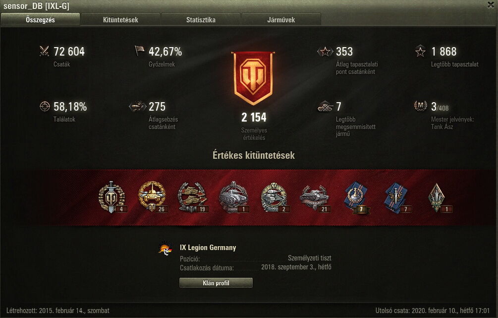 Én: Account created: 11/05/2011, 49,658 BATTLES, 54.19% VICTORIES, 71.80% HITS, 1,291 AVERAGE DAMAGEMindenesetre köszönöm az ajánlatot!