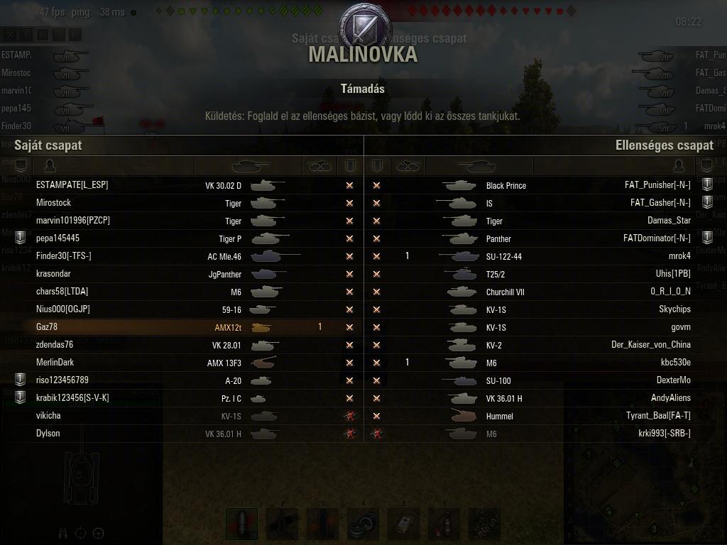 Malinovka dél: beengedig a bal szélen a T-43-at (kicsivel később többen is jöttek) és szénné szpottoltak minket. Persze ilyenkor az ellen tüzérség jól szórakozik (a kegyelemdöfés egy 1200-as találat volt számomra).