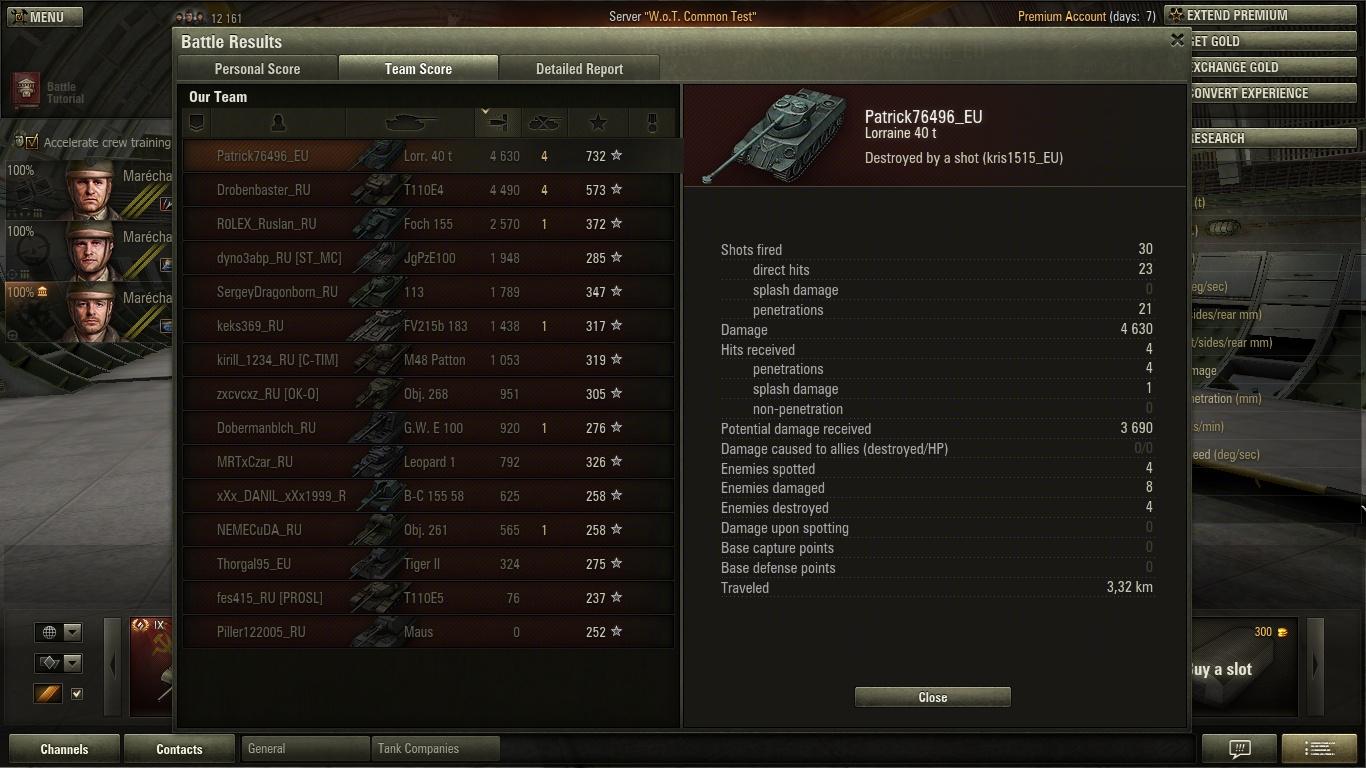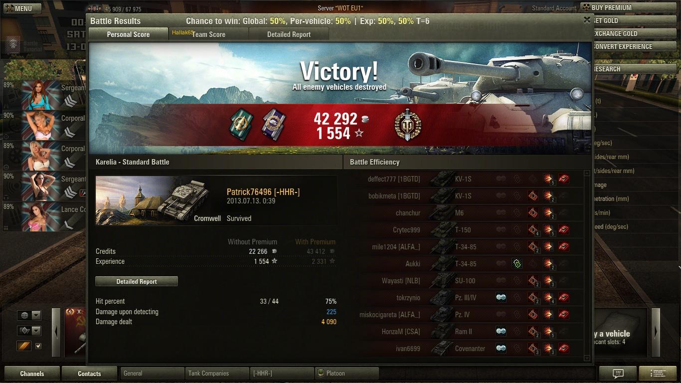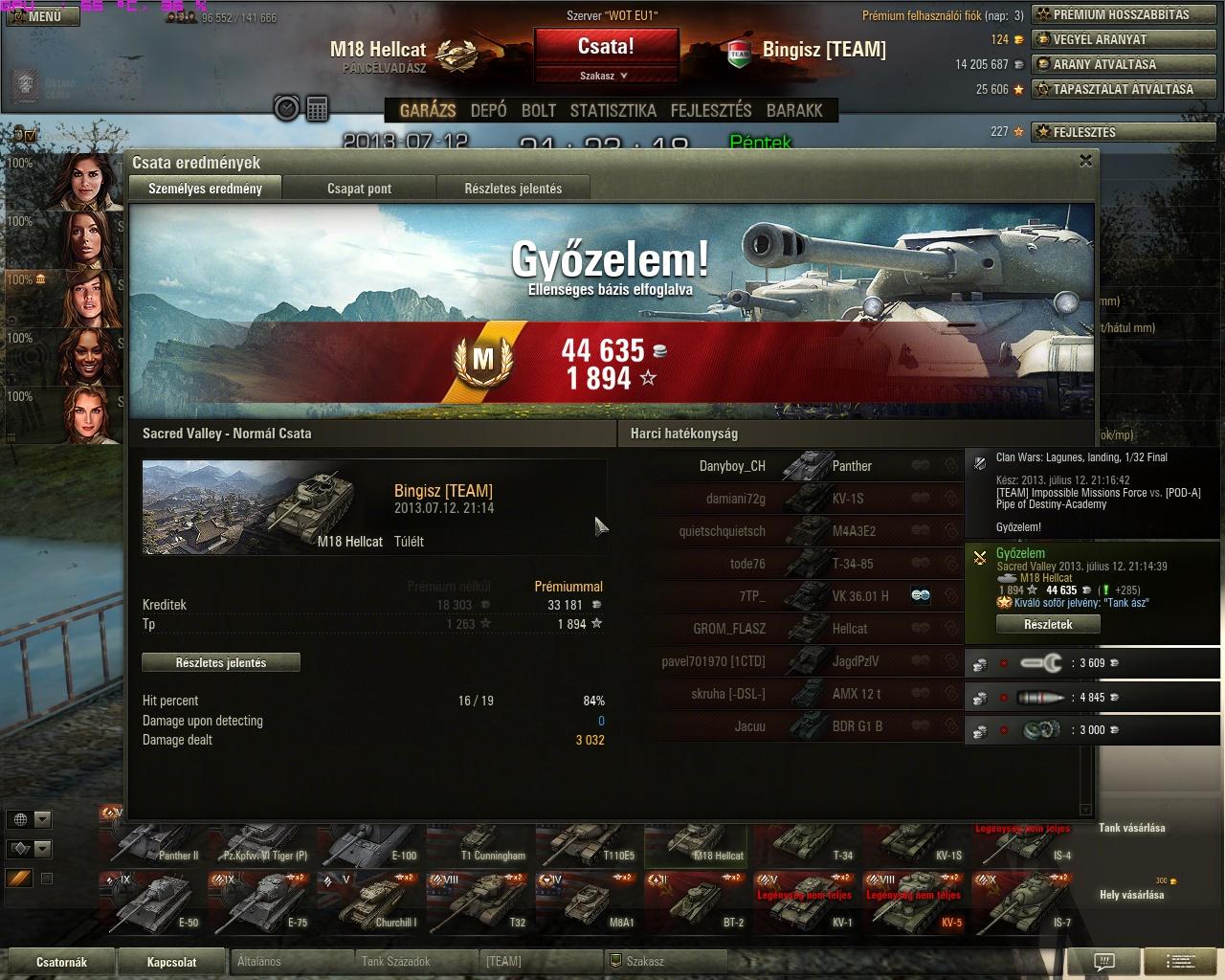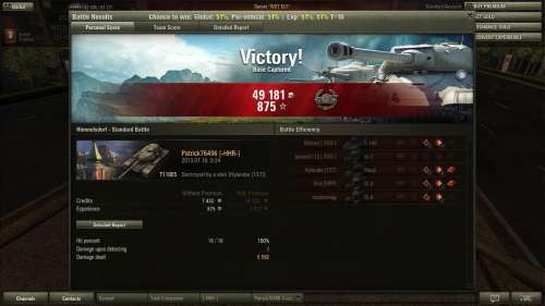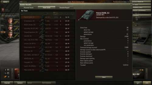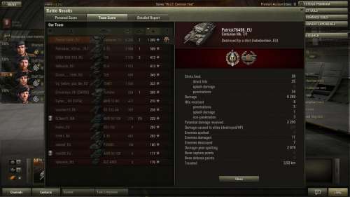 Eddig nekem nem volt gondom a patch óta, sőt jobb is lett, de ma elért az átok. Különösen a Tiger P-t üldözte végig. Pattantam mindenről, a híresen pontatlan ágyúja semmit sem talált el, ha mégis, nem ütött át semmit, a JagdPanther látott engem a nyílt utcán, én őt nem (csigaszemmel...). A nap csúcspontja az volt, amikor a Pz III/IV oldaláról pattantam... A saját csapat már csak a hab volt a tortán, troll szakaszok minden 2. csatában.