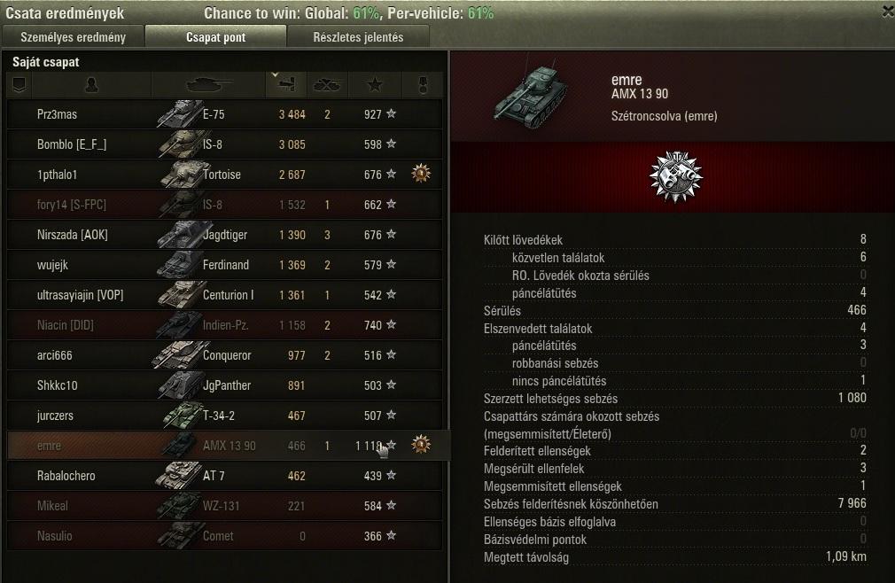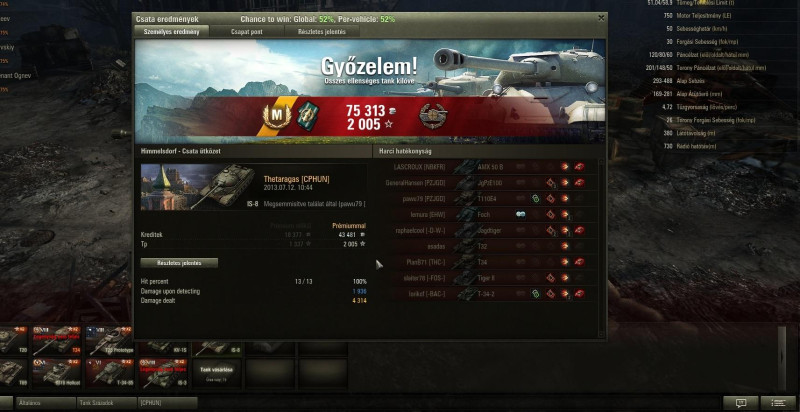 mindenesetre nagyon örültem neki, ami nem tetszett, hogy egyedül faragtam le az IS7 - et kb. 200 hp - ra 1v1 - ben, és nem én lőttem ki