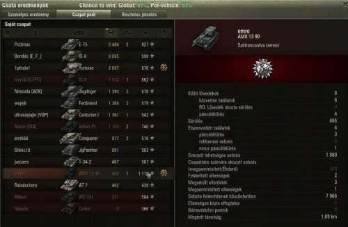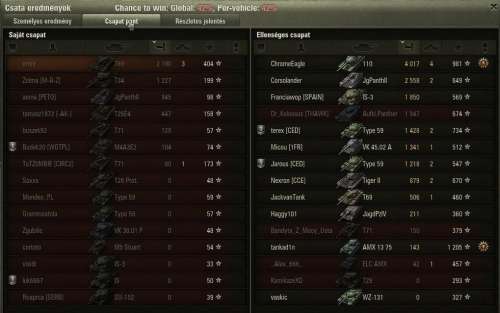Még valami, ma nem volt az xvm szerint 50% körül a nyerési esélyünk, 60 felett vagy 40 alatt mind. Bár ezt nem szoktam figyelni csaták alatt mert sokszor teljesen mást mutat a végeredmény.