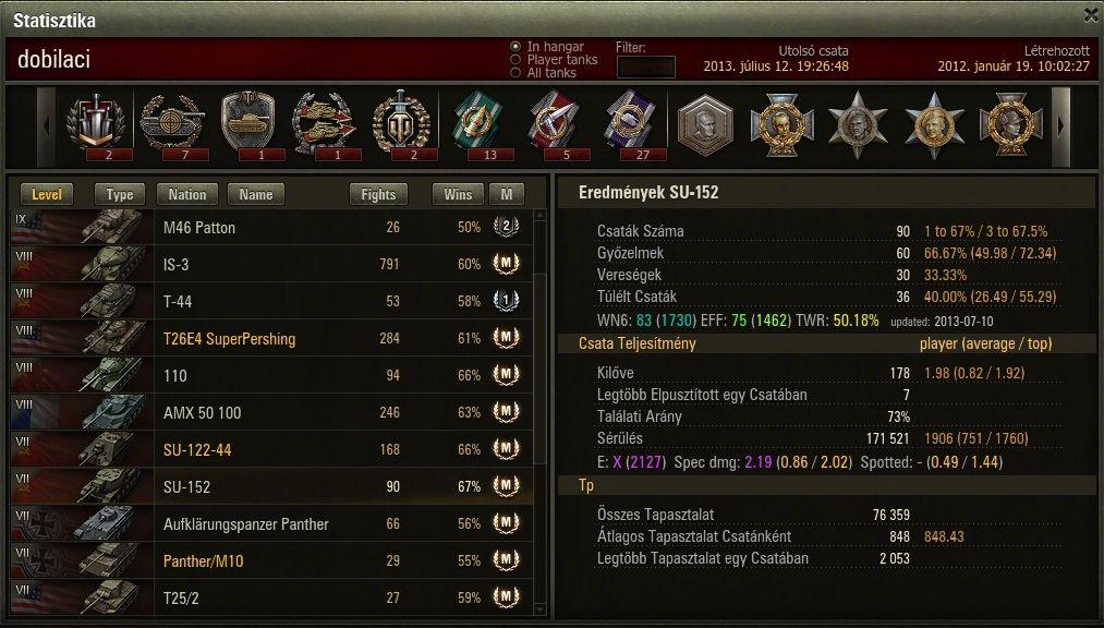 Közben azért elit lett a SU-152 is. Eddigi WoT pályafutásom legizgalmasabb TD-je (na jó, a SU-122-44 is ott van a szeren, de az prém tank).