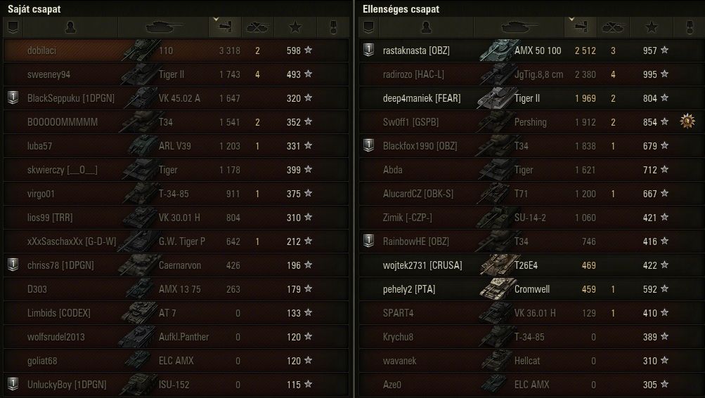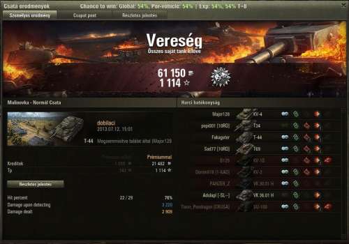 A csata vége ez lett (teli voltunk 1-500 WN6-os 6-8K csatás játékossal), ez Malinovkán = masszívan kempelt 11 tankunk.