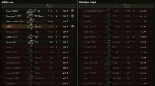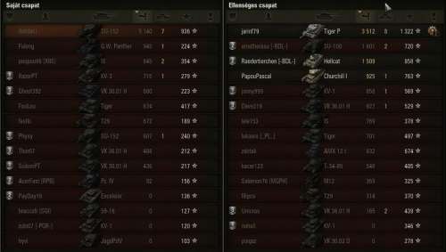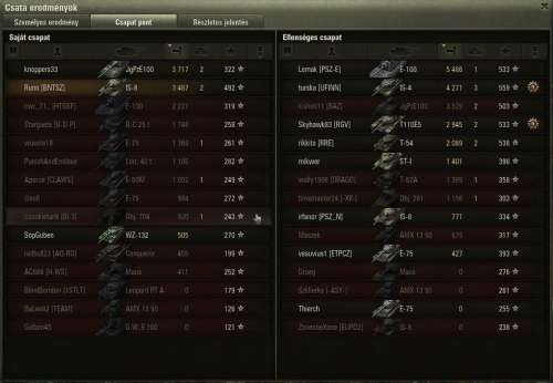 (#7506) Runo: tegnap olyan csatában voltam IS-8-al, hogy a mi csapatunkban 6db T10-es tank, az enemynél 9....szerinted?!? Vagy egy másikban 4 vs 5 és mellette -3 T9 a javunkra! Elég igazságosak a leosztások!