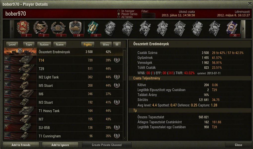 Volt egy kis visszaesés a győzelmi arányomban nekem is. Pedig a játékstílusomon nem változtattam. Ugyan azokkal a tankokkal mentem, de valamiért mégis csökkent 0,25%-ot. Viszont pár napja úgy emelkedik ahogy az előző pár hónapban. A többi értékemben viszont nekem volt visszaesés.