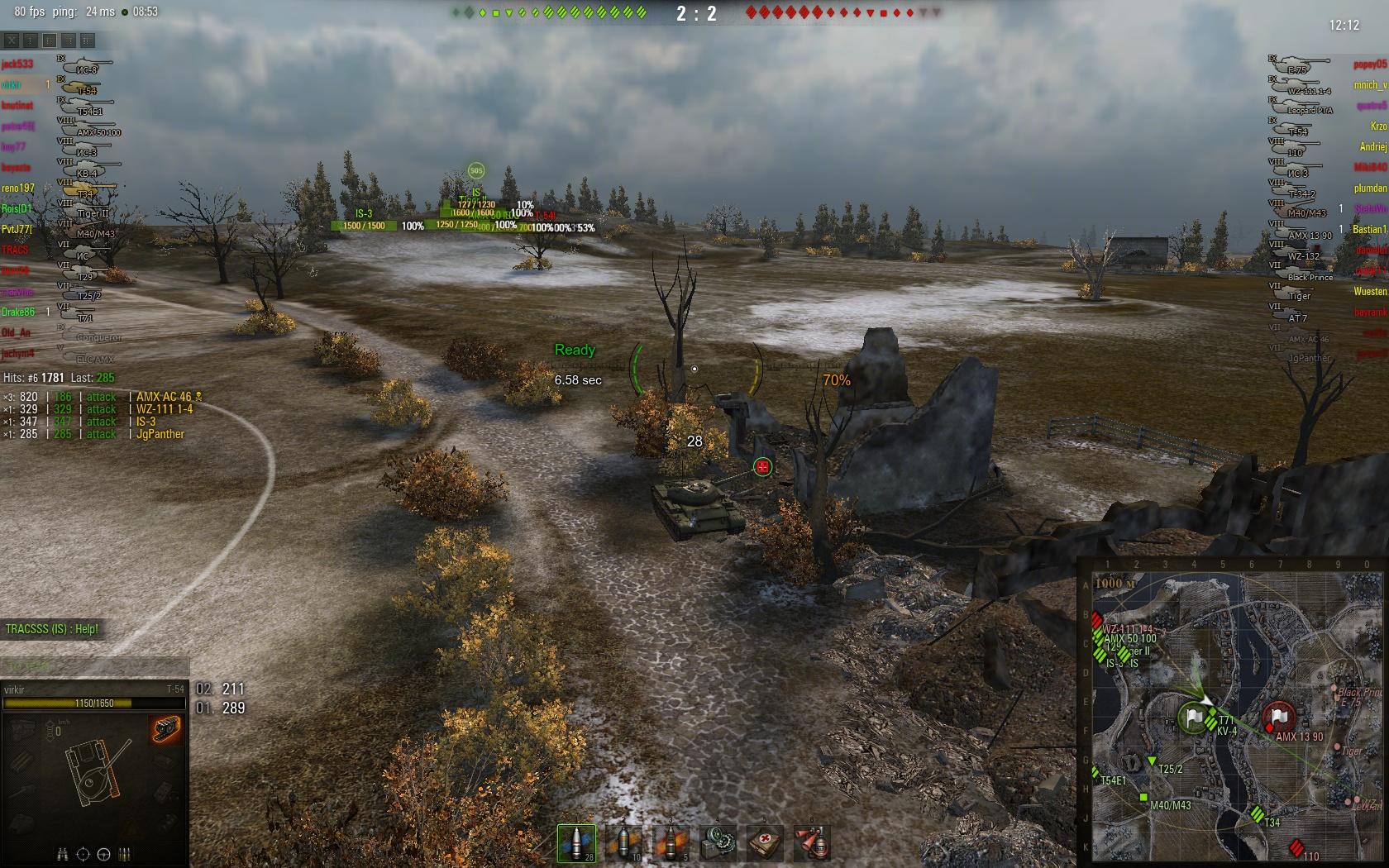 A 122-es ágyút csak kíváncsiságból tettem fel, de úgy gondolom ezzel mutatja meg az igazi arcát ez a TD. Normál lőszerrel 175 mm átütés és 440 alfa sebzés, (kigyúrt legénységgel és ventivel) 6,1 mp-es töltési idővel.
