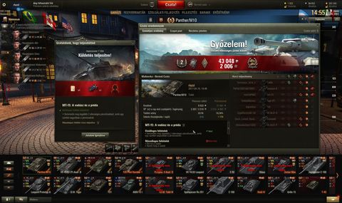 Mindkettőt vaklövéssel végeztem ki, szerencsém volt. Előtte és utána is 3-4 lövés érthetetlenül mellé ment, így a 2k sebzés nem jött össze, de nem is érdekel, a pénz miatt úgyis végigviszem az SPG vonalat is (az LT és a TD kitüntetéssel lett meg). Jöhet a HT!