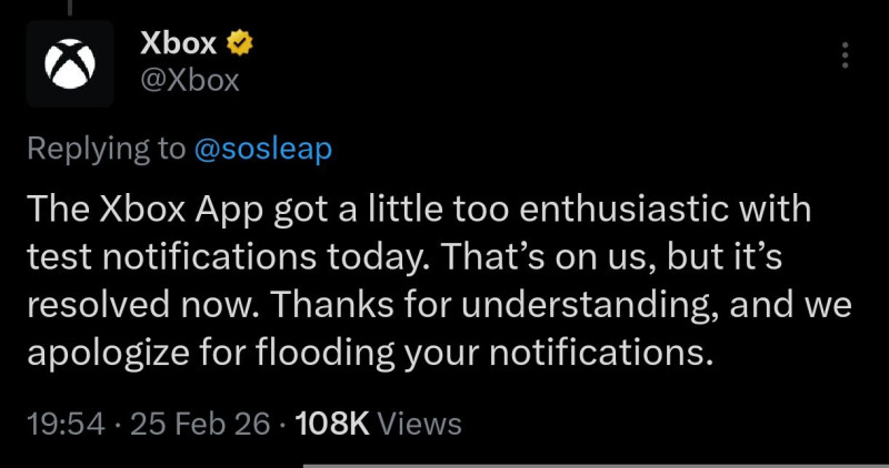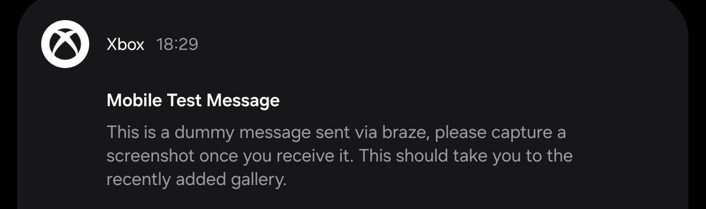 This is a dummy message sent via braze, please capture a screenshot once you receive it. This should take you to the recently added gallery."Mi történik itt, épp elcsesztek valamit az Xbox-os mobil fejlesztők? Szerintem ezt az üzenetet nem kellene megkapnom mezei felhasználóként, ráadásul nem ennyiszer.