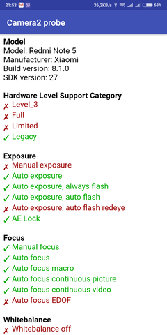 API próbára inkább Camera2 API probe appot, lehet az általad kívánt nem is megy vele. -